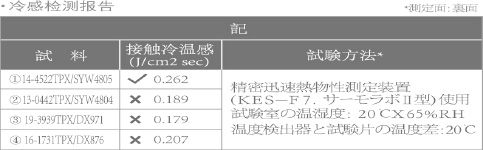 具體產品,其冷感值列示如下: