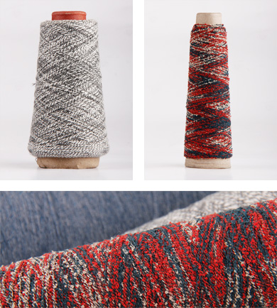 花式紗主要是通過多種組分、多種工藝,形成纖維風(fēng)格、形態(tài)、外觀上的變化,例如竹節(jié)紗、大肚紗、圈圈紗、金銀紗等等。