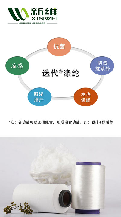 以迭代®滌綸為原料,在其親水舒適、低溫環(huán)保的特性基礎(chǔ)上,還可以附加抗菌等系列功能性,進(jìn)而形成一系列性能迭代®滌綸。